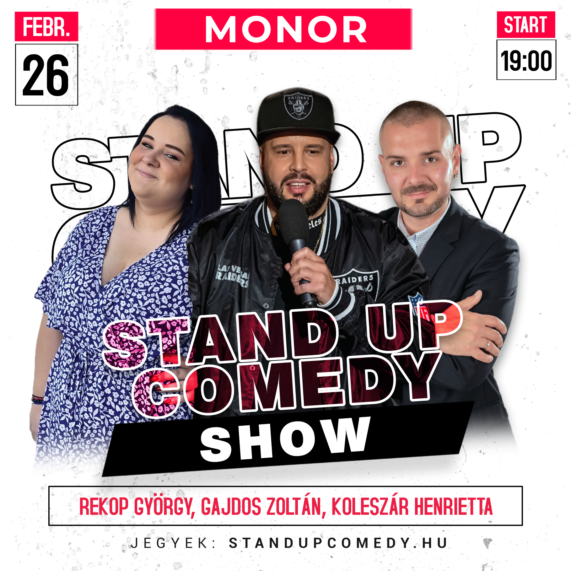 Vigadó Kulturális és Civil Központ Kossuth Lajos utca 65-67., Monor, Pest, MagyarországFELLÉPŐK: REKOP GYÖRGY, GAJDOS ZOLTÁN, KOLESZÁR HENRIETTA Jegyek kaphatók awww.standupcomedy.hu oldalon.